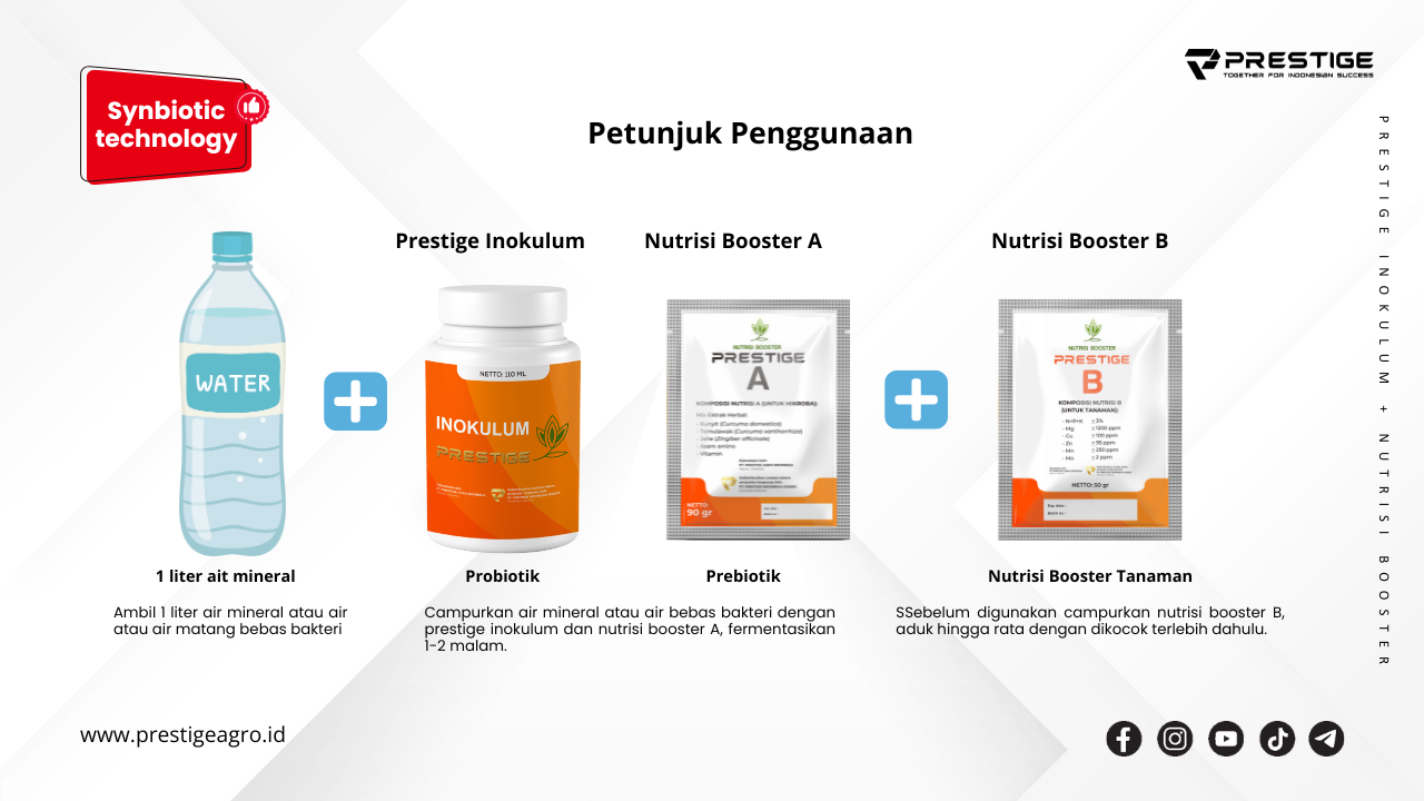 - Campurkan Prestige Inokulum 100-150 ml kedalam 1 Tangki penyemprotan.